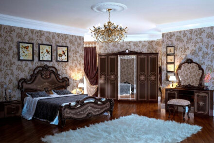 Спальня "Грация" создаст необычайно уютную и роскошную атмосферу в комнате. Мебель "Грация" искусно обогащена креативными штрихами винтажного, рельефного декора "с позолотой".